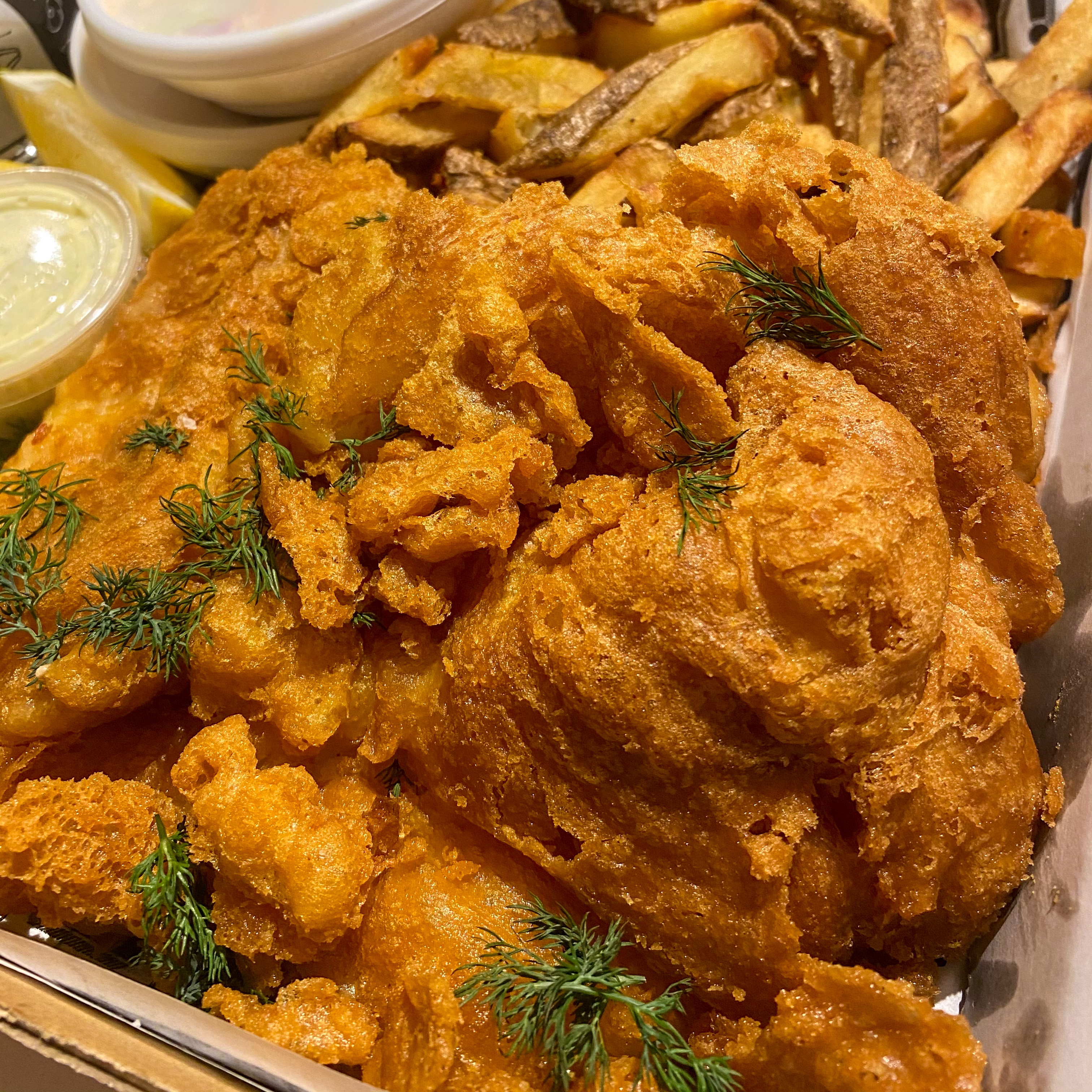 I’m a sucker for pop ups because I love supporting small businesses and most of the time, the food is always the fucking best! So I saw FishPop show up with these bomb ass photos and I knew I must have been hungry because I, all of a sudden, wanted fish and chips! It was the Joon on Fire (the spicy version) that caught my eye because I’ve never seen fish and chips seasoned like that so I had to have it.